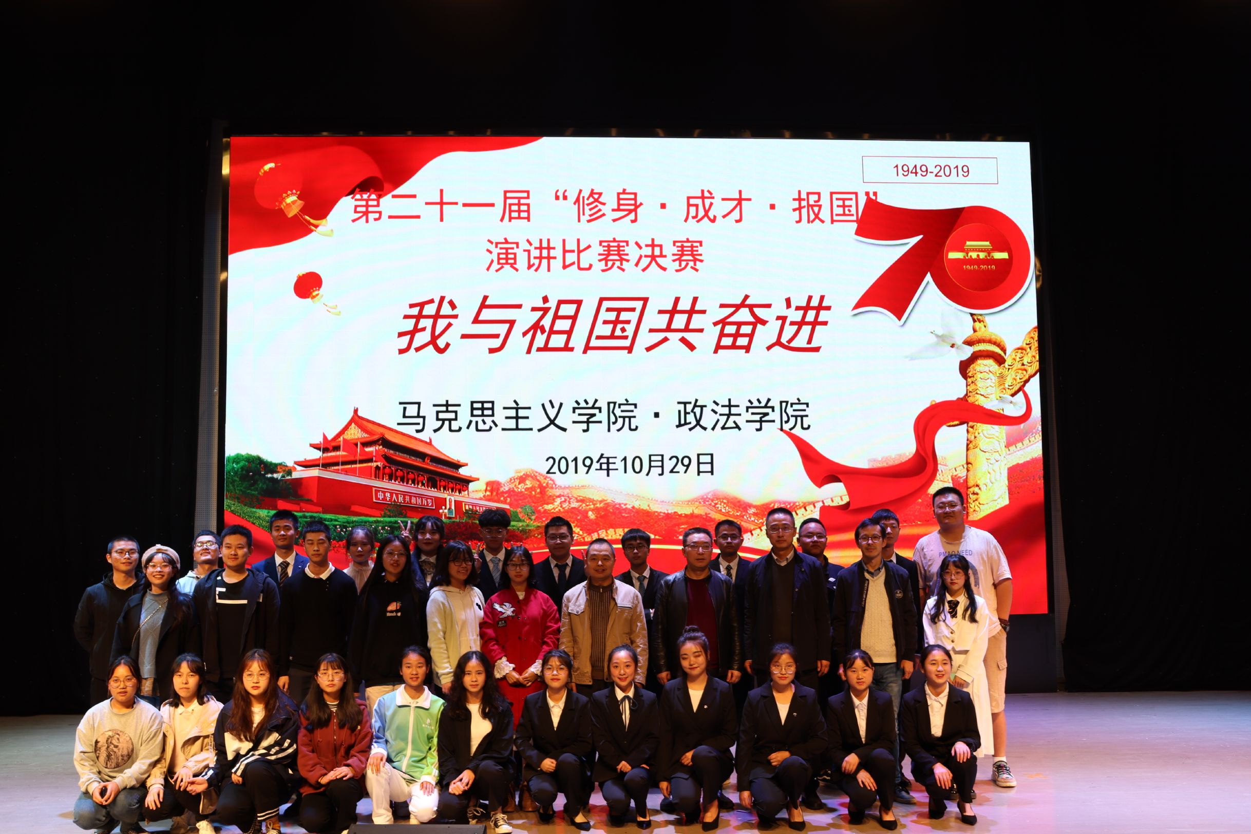 本届比赛旨在庆祝中华人民共和国成立70周年,学习贯彻习近平总书记在纪念五四运动100周年大会上的重要讲话精神,大力唱响礼赞新中国、奋进新时代的青春主旋律,引导2019级同学尽快适应全新的大学生活,为其提供发展自我潜能、拓展自身素质的舞台。