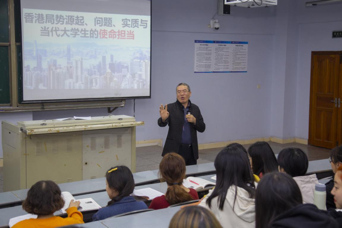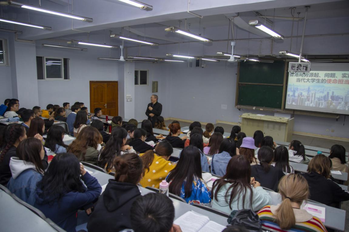 11月4日晚,学校副校长徐晓宗教授在博文楼412教室为文学与传播学院学子讲授题为“香港局势的源起、问题、实质”的形势与政策课。beat365英国官方网站院长刘长江、文学与传播学院辅导员、2018级部分学生到场聆听。