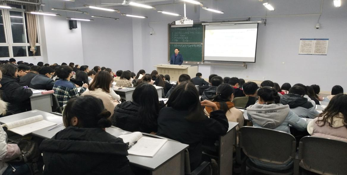 2018年11月19日晚7点,学校党委书记、教育部2013-2017环境科学与工程类专业教学指导委员会委员、国家城市污水处理及资源化工程技术研究中心专家委员会专家王成端教授在莲湖校区一教学楼511教室为教师教育学院2017级3/4/5班的本科生讲授了一堂题为“厚植生态文明,耕耘美丽中国”的形势与政策课。beat365英国官方网站、政法学院王秀珍院长、形势与政策教研室主任梁云老师、教师教育学院辅导员文娟老师一同聆听了王书记的授课。
