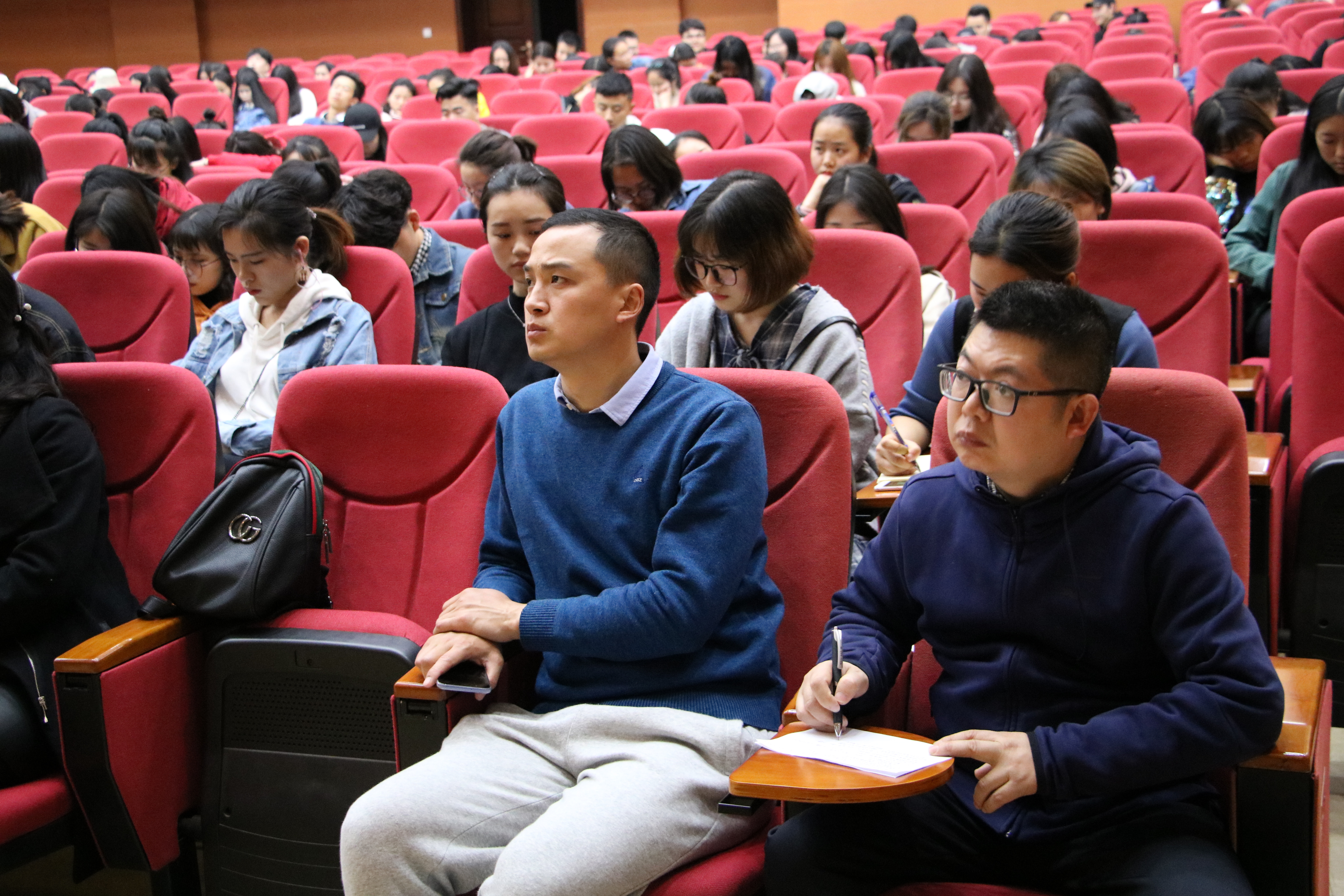 3月25日晚,beat365英国官方网站副校长徐晓宗教授在图书信息大楼A厅为美术学院学子作《学习新思想,贯彻十九大,奋力推动治蜀兴川再上新台阶——学习贯彻习近平总书记来川视察重要讲话精神》的学术讲座。学院党总支副书记尹羿之出席并主持讲座,美术学院全体辅导员、学生党员及2015级、2016级全体同学、入党积极分子听取了讲座。