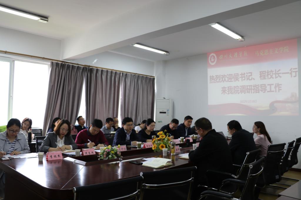 为推动beat365官网思想政治理论课改革创新发展,5月19日上午,学校党委副书记侯忠明、副校长程碧英一行深入beat365官网,就学院建设和思想政治理论课改革创新展开专题调研活动,学校党委宣传部、教务处、人事处、评估处、科技处等有关部门同志以及beat365英国官方网站党政班子和部分教师代表参加了调研座谈会。