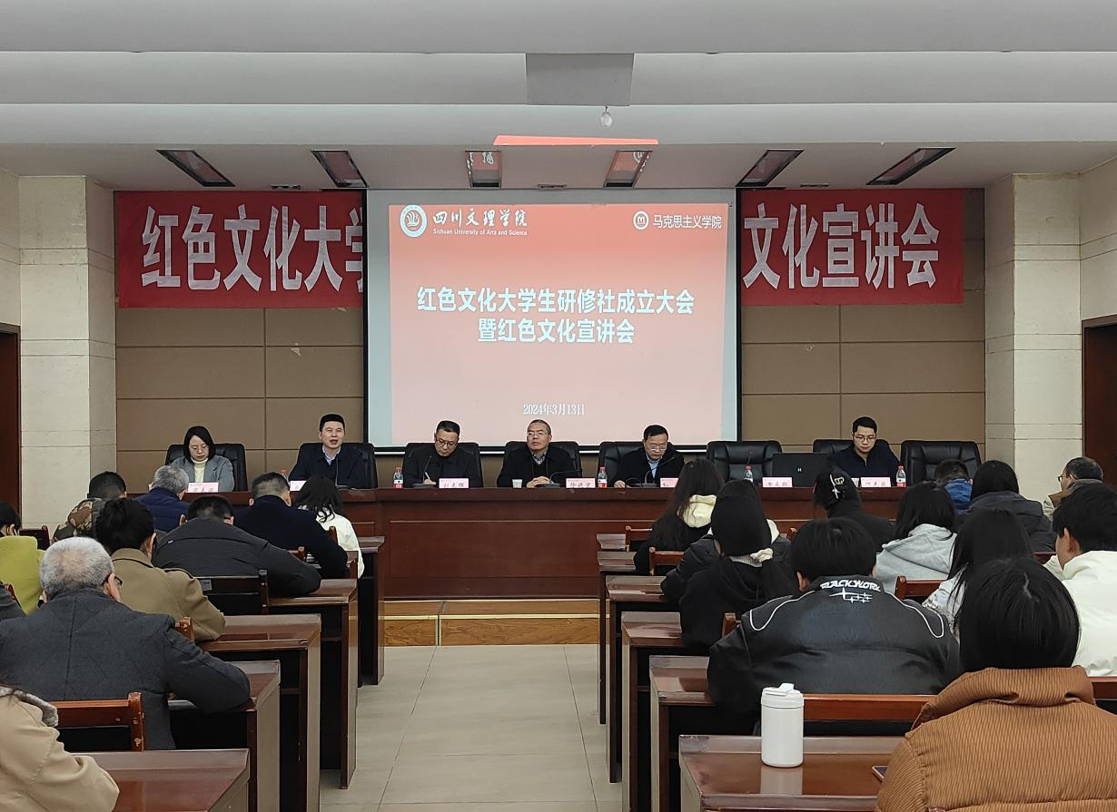 徐晓宗在会上致辞。他对大学生红色文化研修社的成立表示热烈祝贺,并指出,大学生红色文化研修社的成立是学校贯彻落实习近平新时代中国特色社会主义思想的重要举措,标志着全校第一个红色思政社团的诞生,有助于擦亮学校红色文化育人的底色。校团委、学生处以及beat365英国官方网站等部门要大力支持大学生红色文化研修社开展工作,共同支持研修社“做实、做活、做新、做大”,努力将研修社培育成为在学校作示范、在川陕革命老区有影响力的标杆社团。他希望,社团深入贯彻习近平新时代中国特色社会主义思想,充分发挥红色文化对青年学子思想品德教育和爱国主义教育的育人作用;文理学子要在社团活动中树立正确的人生观、价值观、世界观,努力成为红色文化的践行者、引领者、传播者,在广大青年学生中起到引领示范作用。