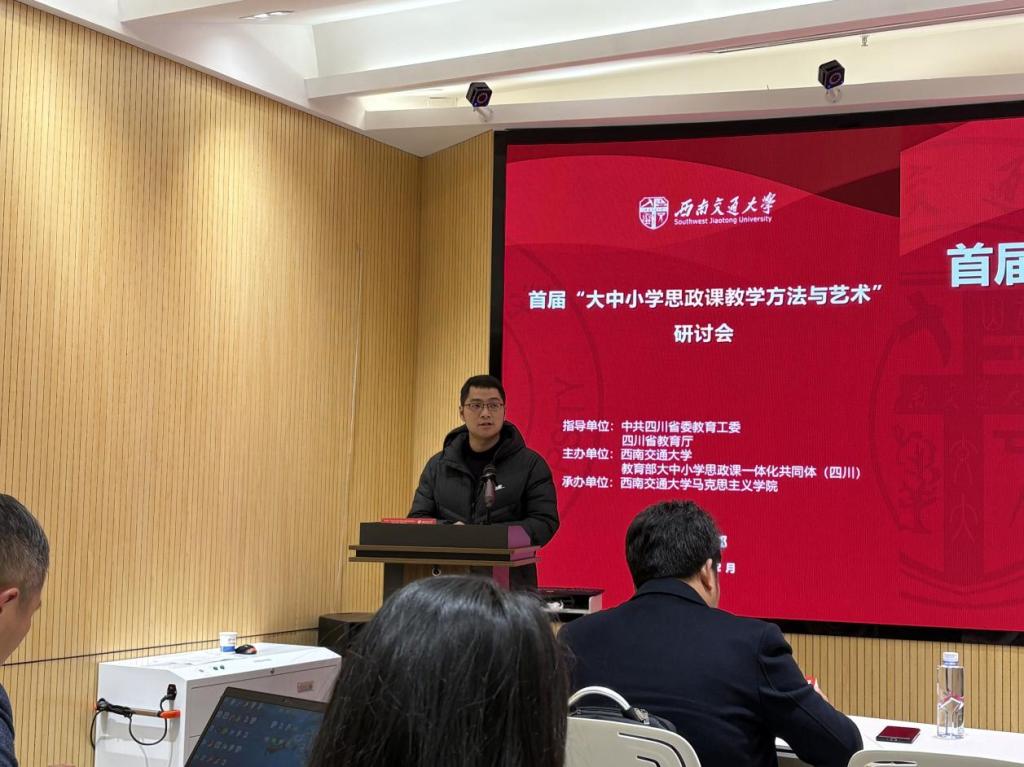 12月21日,由教育部大中小学一体化共同体(四川)、西南交通大学beat365英国官方网站主办的首届“大中小学思政课教学方法与艺术”研讨会在西南交通大学举行。教育部大中小学思政课一体化共同体相关省区(市)代表,大中小学思政一体化建设相关领导、专家、学者、大中小学思政课教师,四川省大中小学思政课一体化共同体代表,教育部大中小学思政课一体化共同体(四川)成员单位代表参加研讨会。学校党委宣传部副部长姜仕华、学院副院长何先成应邀参会交流。