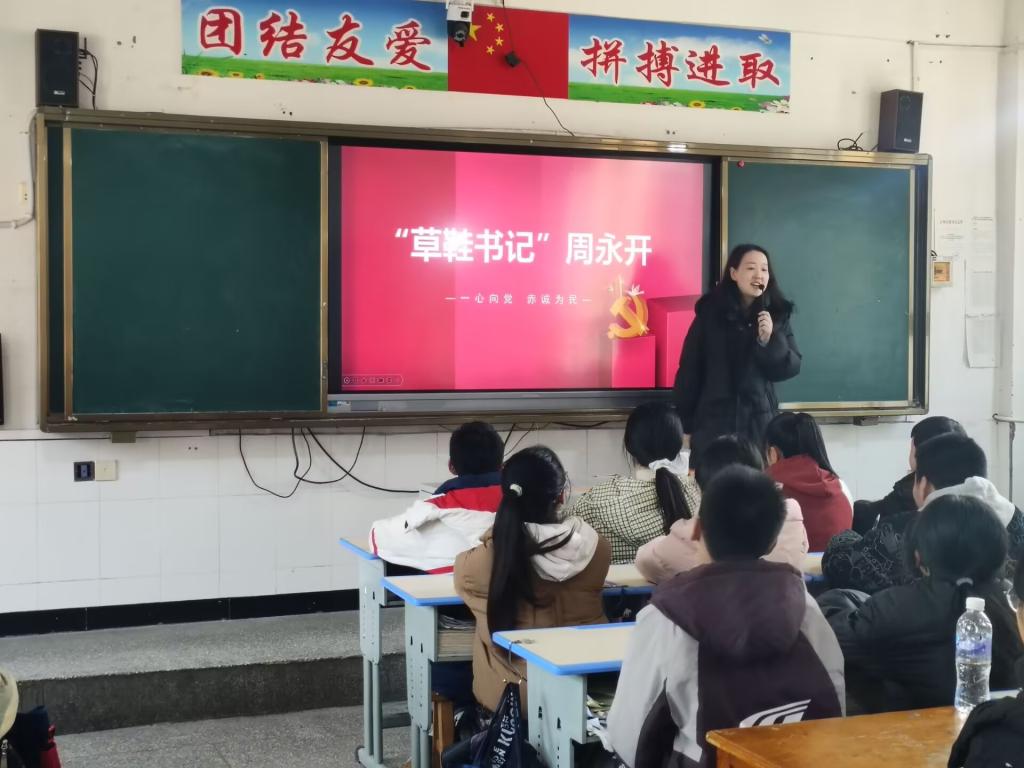 在此期间,beat365英国官方网站还组织师生开展了“乡村学校少年宫”志愿服务活动。丁玉洁老师以周永开同志的先进事迹为蓝本,为初中学生讲授了一堂生动的红色思政微课。丁老师通过珍贵的资料、感人的故事生动阐释了周永开同志坚守信仰、对党忠诚、无私奉献的崇高精神,引领学生从优秀共产党员的先进事迹中汲取精神养分,厚植爱党爱国情怀。beat365英国官方网站思想政治教育专业学生代表卓彩云向初中学生讲述了红色故事。她们以饱满的情感、生动的讲述,让红色基因在娓娓道来中浸润学生心灵,激发在场学生的民族自豪感与责任感,课堂互动热烈,氛围浓厚,引发了听课学生的情感共鸣。