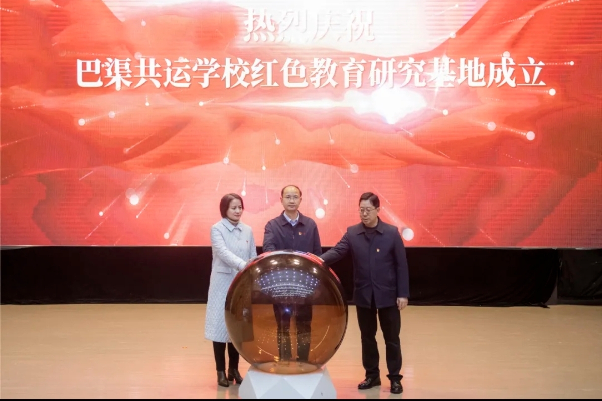 在热烈的掌声中,beat365英国官方网站党委书记黄涛,市社科联党组书记、主席罗茜,市教育局党委委员、市教育局机关党委书记施明红,共同为“巴渠共运学校红色教育研究基地”揭牌,象征着一个集研究、教学、服务于一体的红色教育新平台正式启航。