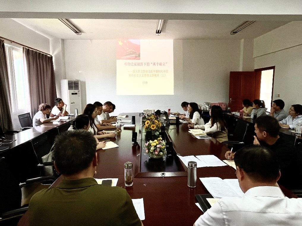 文茂群以《唯物史观视野下的“两个确立”》为题,阐明了“两个确立”的提出过程,围绕三个方面讲授:一是唯物史观视野下的领袖权威;二是唯物史观视野下习近平新时代中国特色社会主义思想指导地位确立;三是“两个确立”是历史和人民的选择。文茂群指出,“两个确立”是维护党的团结统一、增强党的政治领导力、思想引领力、群众组织力、社会号召力的必然要求,是建设社会主义现代化强国、实现中华民族伟大复兴的根本政治保障,必须坚持“两个确立”,自觉做到“两个维护”。