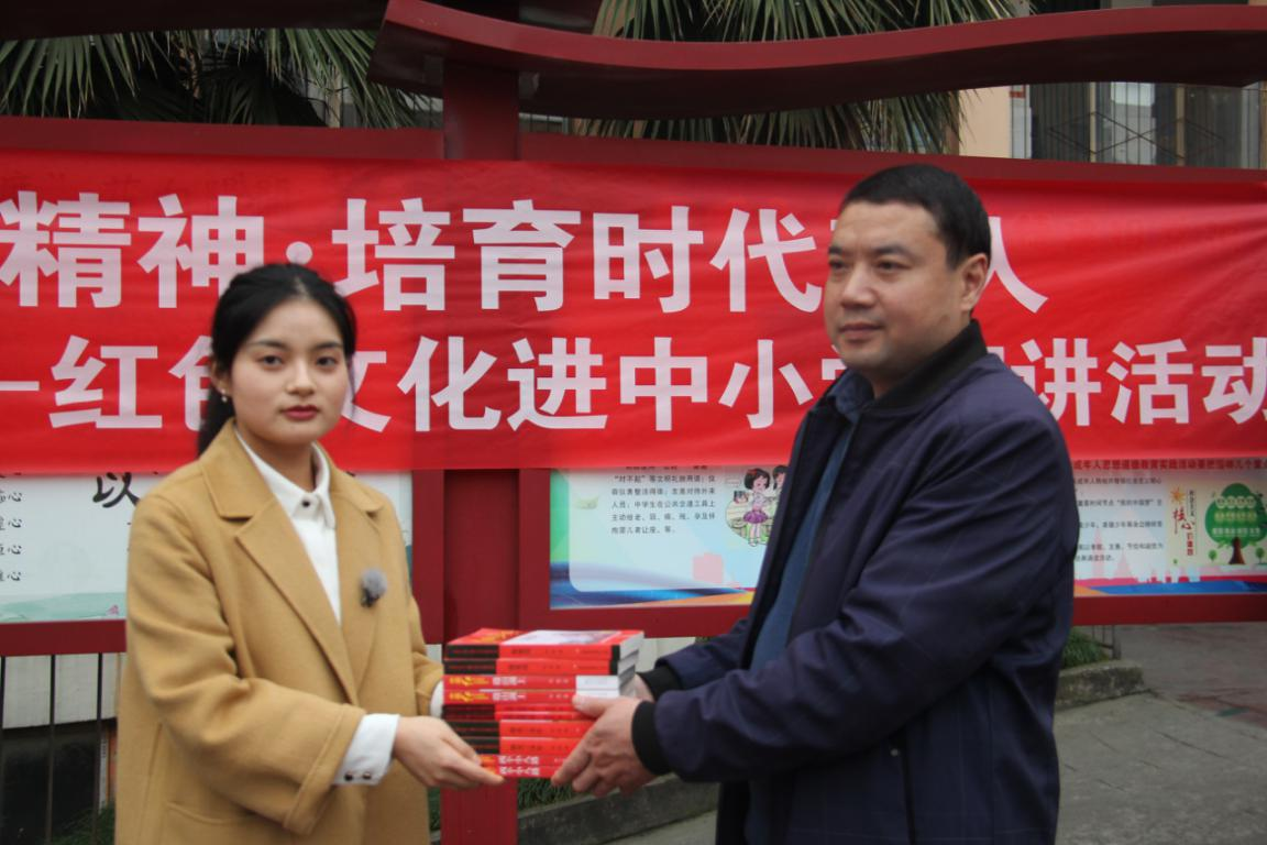 在红色文化宣讲活动中,研究会组织了两个宣讲组,进入耀华育才学校的两个班级对学生进行红色文化教育。宣讲组通过讲解革命战争年代川陕革命老区涌现出的张爱萍、陈伯钧等英雄人物及其感人事迹,倡导学生向革命先烈学习,争做新时代好少年。并通过开展击鼓传花等活动,在活动中邀请学生唱红歌、讲红色故事、扮演红色人物,推动学生进一步将红色文化中所蕴含的精神价值入心入行。此外,教师李沵芮代表beat365英国官方网站和研究会还为耀华育才学校捐赠了100册红色故事书籍,以进一步推进红色文化进课堂及达州市大中小学校思政课一体化建设。