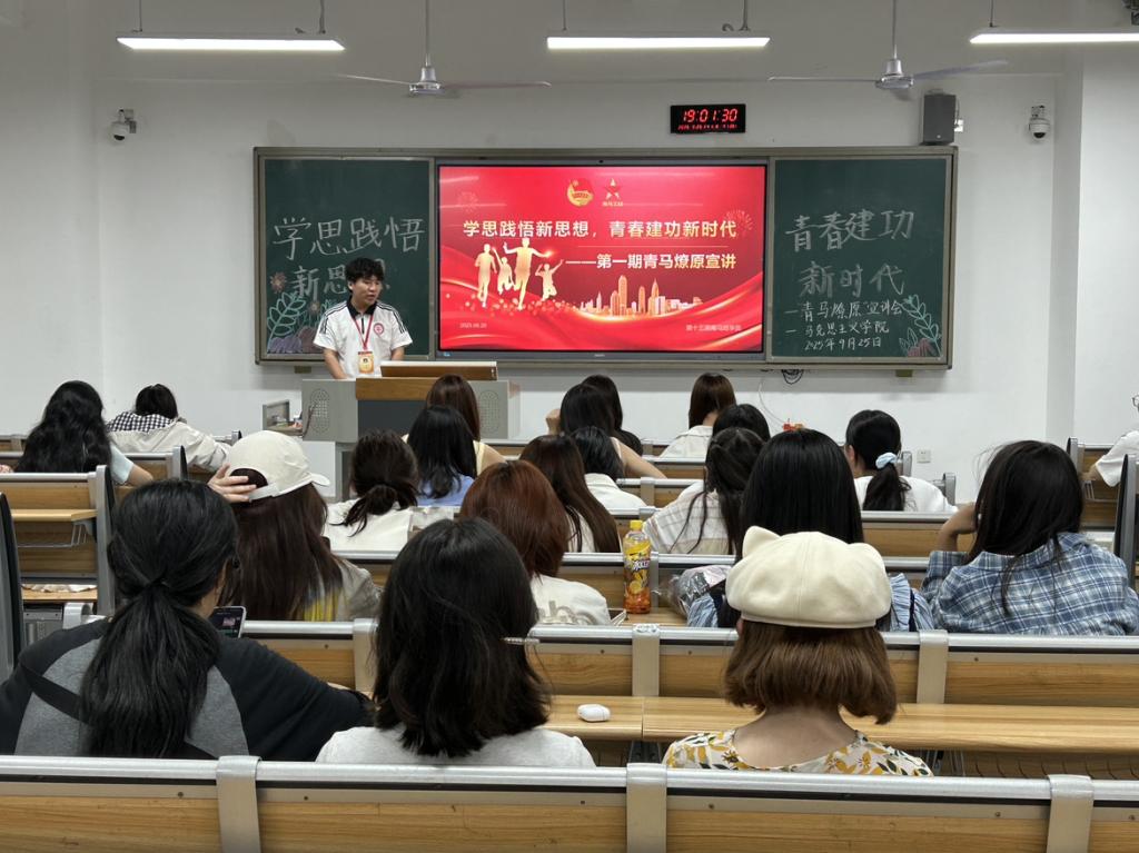 为深入学习贯彻习近平新时代中国特色社会主义思想,引导青年学子坚定理想信念、勇担时代使命,2025年9月25日晚7点,beat365官网在莲湖东区B102教室开展“学思践悟新思想,青春建功新时代”主题宣讲活动。活动由学院参加我校第十五期青马班学员张应轩、鲁文杰、姚雨涵主持,beat365官网2025级全体学生参与。