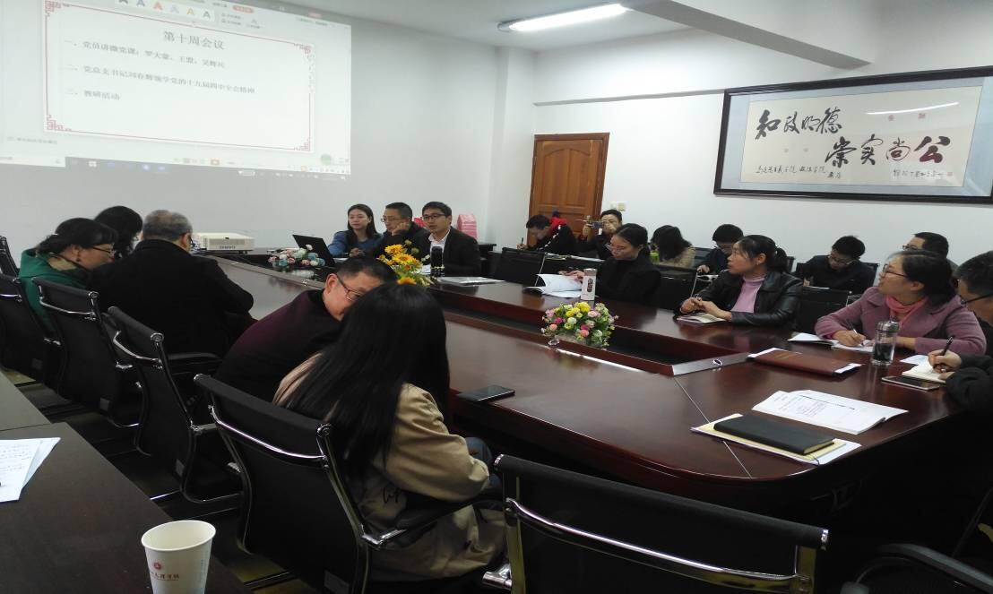 为及时传达全会精神,11月6日下午,beat365英国官方网站党总支书记刘春辉主持召开十九届四中全会精神专题学习会。beat365英国官方网站全体教师参加会议。