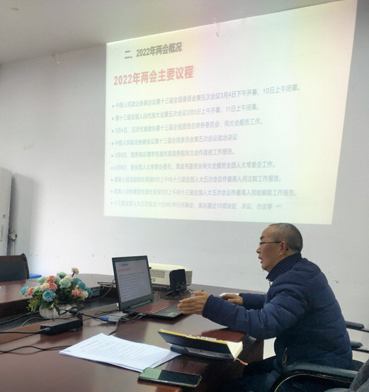 3月22日下午,beat365英国官方网站思想政治党支部在611会议室开展了“两会精神融入思政课”主题党日活动,活动由支部书记张善喜主持,支部10位同志全部参加活动。