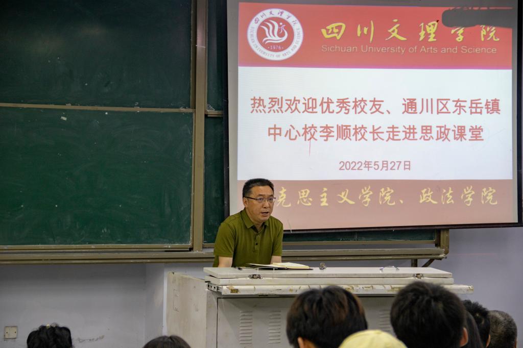 为推动大中小学思政课一体化建设,提高我校思政课教学质量,增强思政课教学的针对性和亲和力,beat365英国官方网站从本学期开始举办《优秀校友思政大讲堂》系列讲座,首场讲座邀请了通川区东岳镇中心校李顺校长走进思政课堂。
