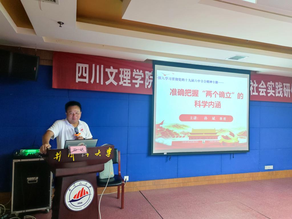 7月4日下午,井冈山大学孙斌教授以《准确把握“两个确立”的科学内涵》为题,深刻分析了“两个确立”对新时代党和国家事业发展、对推进中华民族伟大复兴历史进程的决定性意义。孙斌教授从四个方面论述了“两个确立”的科学内涵,一是“两个确立”的生产背景;二是“两个确立”的必然逻辑;三是“两个确立”的价值意蕴;四是坚决做到“四个”自觉。孙斌教授号召我们要自觉做习近平新时代中国特色社会主义思想的坚定信仰者、忠实实践者,坚持不懈用这一伟大思想武装头脑、指导实践、推动工作。