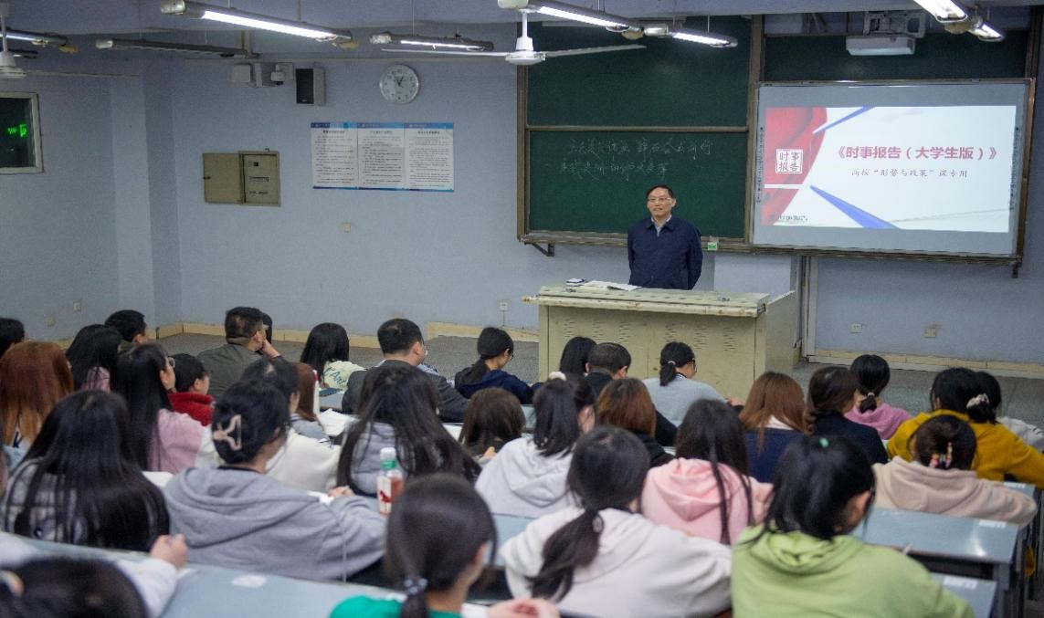 校党委书记王成端教授为文学与传播学院师生作形势与政策报告