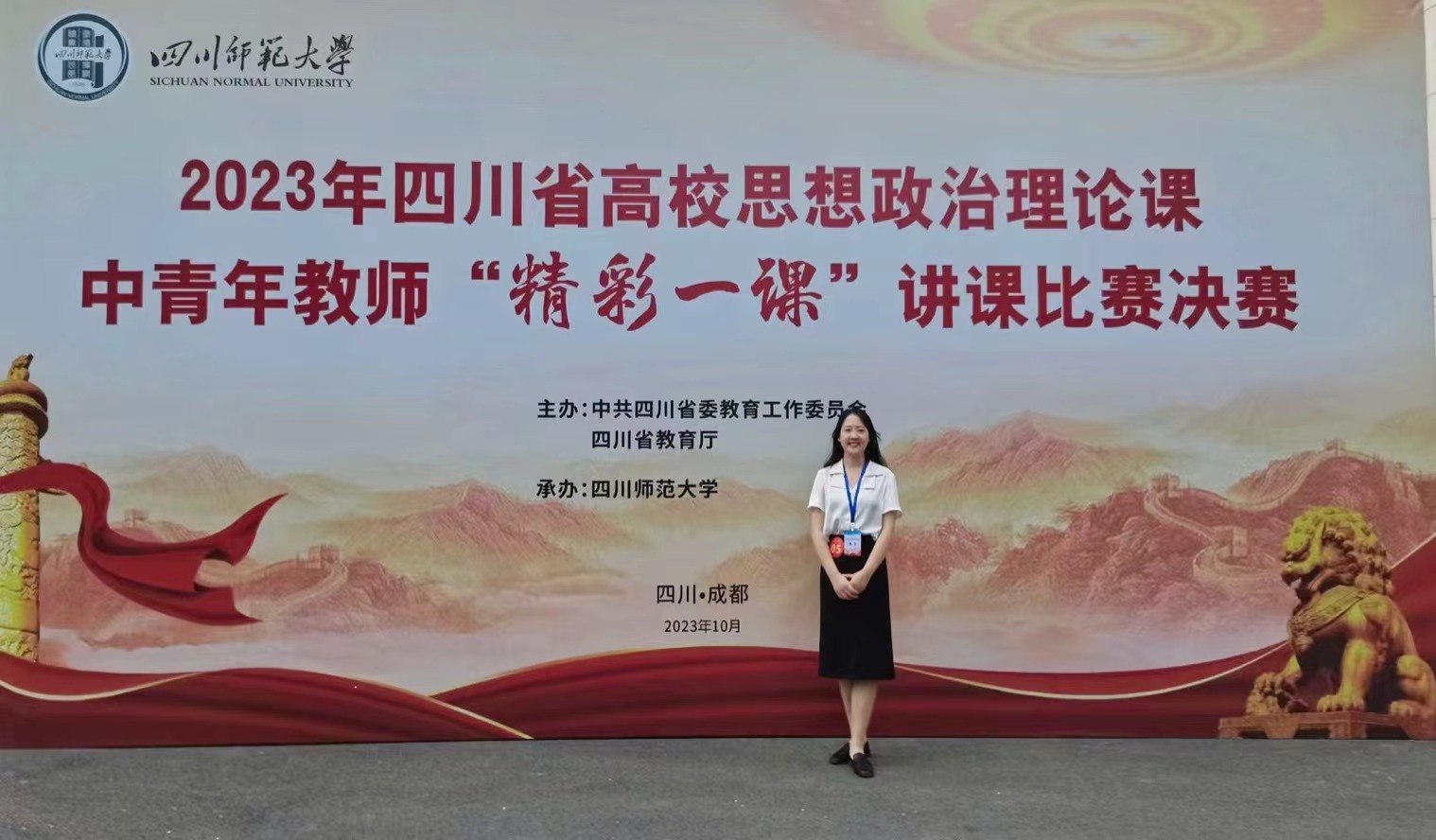 10月28-29日,2023年四川省高校思想政治理论课中青年教师“精彩一课”讲课比赛决赛在四川师范大学举行,此次大赛旨在充分展示全省各高校深化思政课改革创新的成果,推动新时代高校思想政治理论课高质量发展。beat365官网高度重视,精心组织,青年教师丁玉洁参赛并荣获“特等奖”。