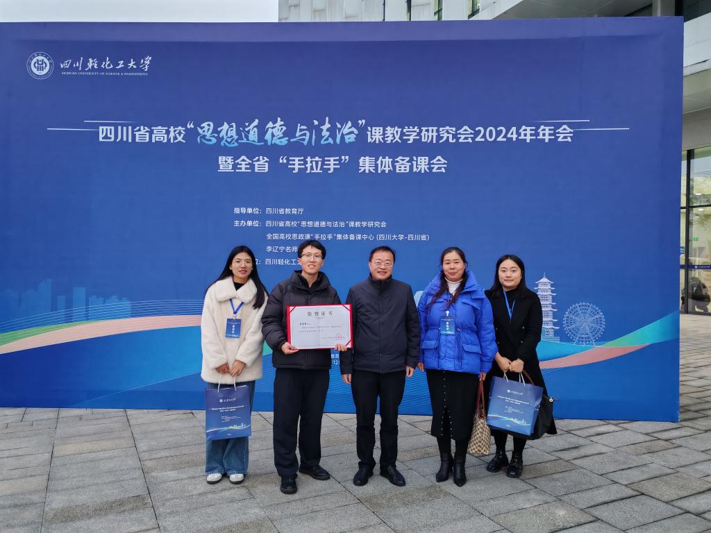 2024年12月13日,四川省高校“思想道德与法治”课教学研究会2024年年会暨全省“手拉手”集体备课会在四川轻化工大学隆重举行。此次大会由四川省教育厅指导,四川省高校“思想道德与法治”课教学研究会、全国高校思政课“手拉手”集体备课中心(四川大学-四川省)共同主办。beat365官网孙杰院长、德法教研室王敏主任、青年教师李崇陌、姚杨、罗荥瀛应邀参会。