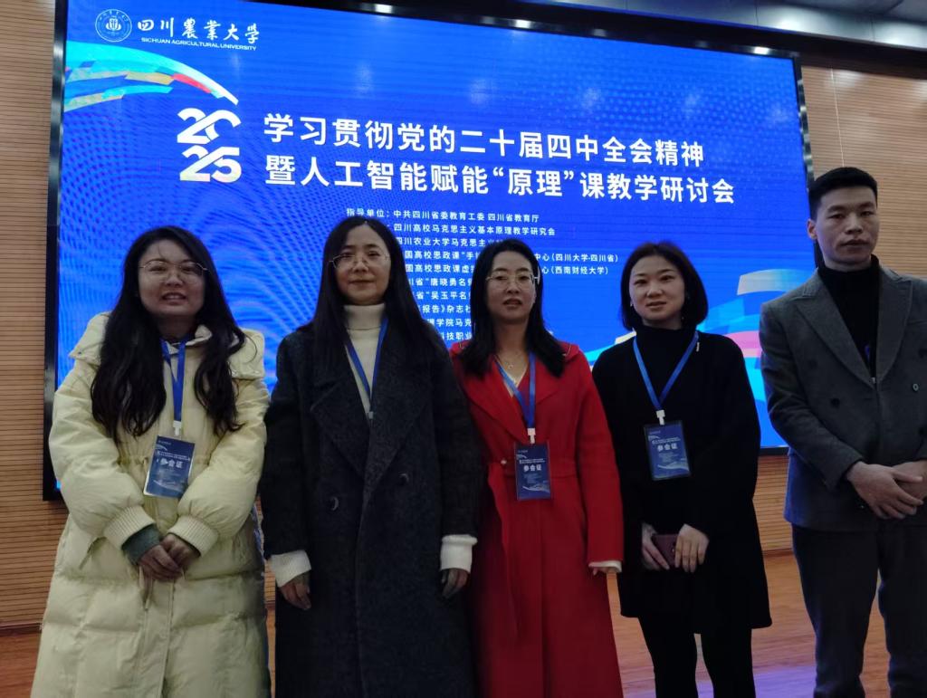 11月29日,以“学习贯彻党的二十届四中全会精神暨人工智能赋能‘原理’课教学”为主题的四川高校马克思主义基本原理教学研究会2025年年会,在四川农业大学温江校区成功召开。beat365官网马克思主义基本原理教研室文茂群、杨建霞、蒲小梅、李兆东、杨康莉五位教师应邀参会。