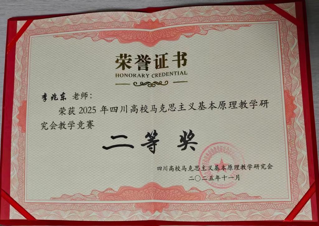 当日下午的教学竞赛环节精彩纷呈,来自全省各本科院校的近50名教师同台竞技、切磋教艺。beat365官网青年教师李兆东以“马克思主义生产力理论与新质生产力”为题授课,凭借扎实的理论功底、深刻的逻辑阐释与透彻的说理表达,充分展现了对教学内容的精准把握和灵活的教学方法运用,经激烈角逐最终荣获二等奖,彰显了beat365官网青年思政教师过硬的教学能力与育人素养。