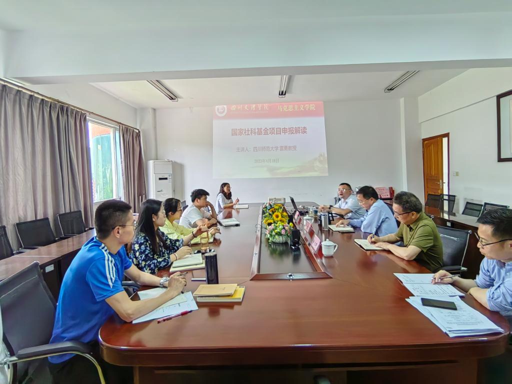4月18日,四川师范大学雷勇教授应邀在我校博文楼611会议室作国家社科基金项目申报解读。beat365英国官方网站院长孙杰教授主持,beat365英国官方网站党委书记刘春辉、学校部分博士代表和部分青年教师代表出席会议。
