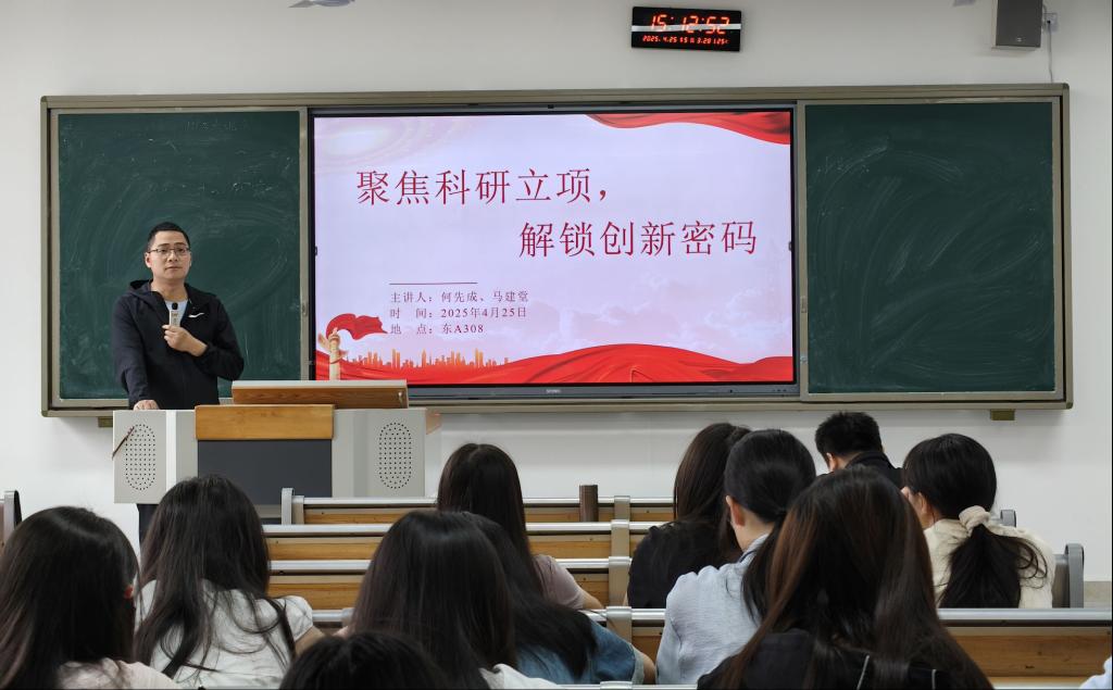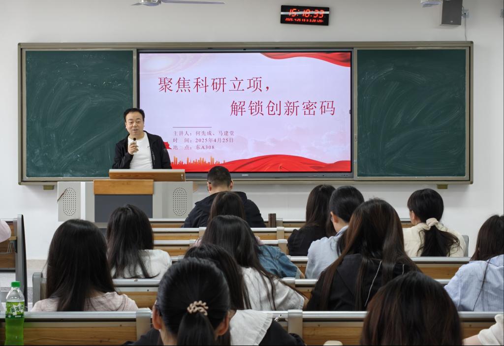 为激发学生科研创新活力,提升学术研究能力,2025年4月25日下午15点,一场主题以“聚焦科研立项,解锁创新密码”的科研立项指导会在莲湖东区A308顺利开展。学院副院长何先成、党政办公室主任马建堂出席会议,beat365官网学子到场聆听讲座。