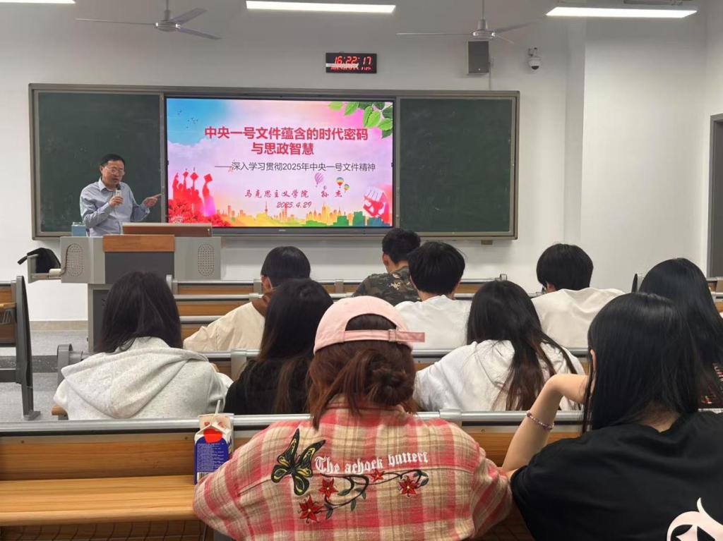 为培养青年大学生家国情怀、社会责任感以及树立关注时事的意识,4月29日在莲湖校区东区,beat365英国官方网站院长孙杰教授为学生作了一场题为《中央一号文件蕴含的时代密码与思政智慧》的学术讲座数学学院部分学生聆听讲座。