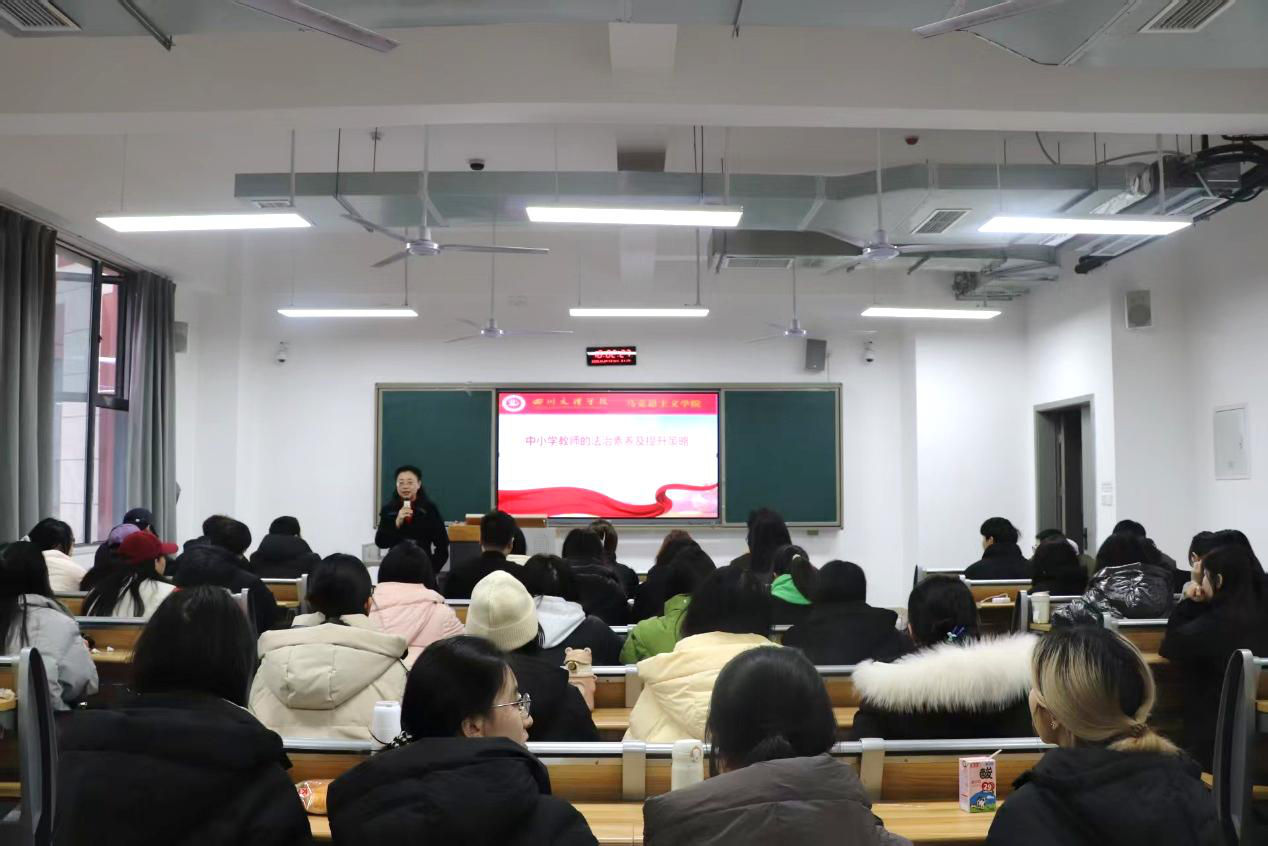 为切实提升师范生法治素养,增强依法从教意识,防范教育教学中的法律风险,12月24日上午10点,beat365英国官方网站思想政治教育教研室主任曹红梅教授在莲湖东区b308为beat365官网大三学子举办了一场名为“中小学教师的法治素养及提升策略”的学术讲座。