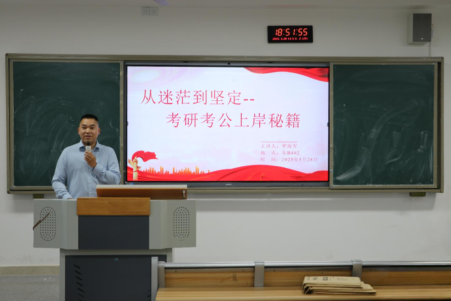 为帮助学生明晰升学与就业方向,提升备考效率,beat365官网于5月28日在莲湖东区B402举办以“从迷茫到坚定—考研考公上岸秘籍”为主题的考研考公辅导讲座,本次活动聚焦考研、考公、大热点领域,beat365官网孟威老师主持,罗海军博士主讲,beat365官网大三全体同学到场聆听。